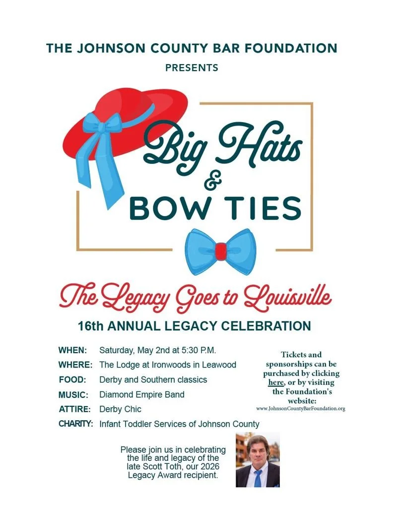 Join us at this year’s Legacy Gala - Big Hats & Bow Ties “The Legacy Goes to Louisville” Kentucky Derby themed event at The Lodge at Ironwoods on May 2, 2026! Wear your best Kentucky Debry attire and enjoy delicious dinner and drinks with fellow attorneys, judges and friends while helping the Foundation donate to charities in the community. There are individual tickets and ticket packages for sale as well as various sponsorship opportunities. This event includes dinner, dancing, silent and live auctions, and a "Raise the Paddle" portion of the program where particular charities and individuals are highlighted and attendees may make donations.